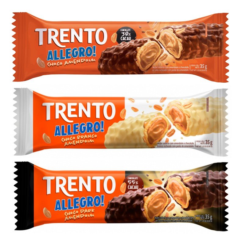 O Allegro é um chocolate produzido pela Peccin que oferece uma experiência única de sabor. Este produto é um wafer crocante, coberto com amendoim e uma dupla camada de chocolate, recheado com uma deliciosa e cremosa pasta de amendoim. É o tipo de lanche que é tão saboroso que você não vai se contentar em comer apenas um. Além disso, é importante notar que o Allegro contém derivados de leite, trigo, soja e amendoim, podendo também conter avelãs, amêndoa, aveia, castanha-do-pará, castanha-de-caju, cevada, centeio, nozes e látex natural. Portanto, é necessário estar atento a possíveis alergias.